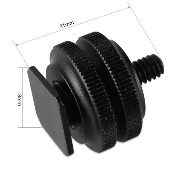 Adaptér Hot Shoe 3/8" na 1/4" je súčasťou zariadenia CoolArm11 a možno ho použiť na montáž príslušenstva s 1/4" zásuvkou na horúcu päticu fotoaparátu. Závit je 3/8" na 1/4": horná časť závitu je 1/4" , spodná časť je 3/8".