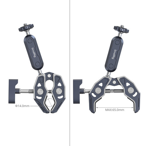 Súprava SmallRig Crab-Shaped Super Clamp Kit (s ramenom Ballhead Magic Arm) 5373 je vyrobená z hliníkovej zliatiny leteckej kvality a nehrdzavejúcej ocele a vyznačuje sa CNC obrábaním a precíznym vyrezávaním, ktoré zvyšujú jej pevnosť a odolnosť. Obsahuje bionickú štruktúru skeletu a žraločiu konštrukciu svorky pre silnejšiu upínaciu silu, zatiaľ čo polohovacie otvory ARRI 3/8"-16 a závitový otvor 3/8"-16 umožňujú bohaté rozšírenie príslušenstva.
