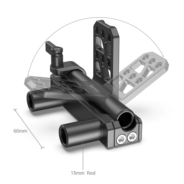 SmallRig Dual 15mm Rod Battery Hinge MD2802 je určený na pohodlnejšiu montáž batérie na súpravu. Je vybavený štandardnou dvojitou 15 mm tyčou, ktorú možno ľahko namontovať na railblok alebo ramennú podložku s dvojitou tyčovou svorkou, ako je napríklad VCT-14 Shoulder Plate 1954. Mala by sa používať s batériovou doskou, ako je V Mount Battery Plate 1846 a MD2801…