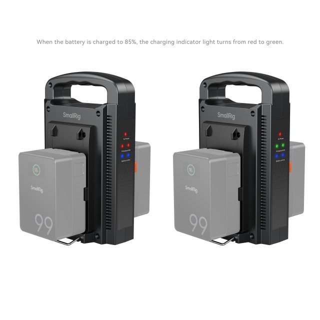 Dvojkanálová nabíjačka batérií SmallRig V-Mount (európska norma) 4578 využíva dva autonómne napájacie a riadiace systémy, ktoré umožňujú súčasné nabíjanie dvoch batérií V-mount na zvýšenie účinnosti. Táto nabíjačka vybavená inteligentným nabíjacím obvodom maximalizuje ochranu životnosti batérií. Prešla prísnymi testami spoľahlivosti vrátane kontroly obvodov, pádových testov a hodnotenia prostredia s vysokými/nízkymi teplotami.