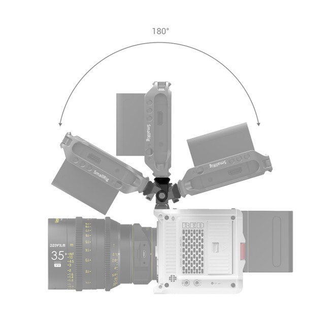 SmallRig EVF držiak na monitor pre KOMODO 3045 sa pripája k monitorom pomocou jednej skrutky 1/4"-20 a pripája sa ku KOMODO alebo ku klietkam pomocou dvoch skrutiek 1/4"-20. Nakláňa sa o 170 stupňov, otáča sa o 360 stupňov a možno ho zastaviť v ľubovoľnom uhle s nosnosťou 1,5 kg, pričom tesnosť je nastaviteľná v každej osi. Jeho horná a spodná časť sú vybavené silikónovými výplňami, ktoré zabraňujú poškriabaniu a zvyšujú trenie. Je vybavený otvormi 1/4"-20, ktoré sú k dispozícii na ľubovoľnú montáž ďalšieho príslušenstva.