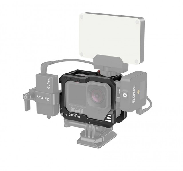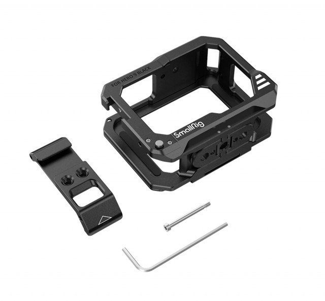 Klietka SmallRig 3084 je špeciálne navrhnutá pre modely GoPro Hero 12, 11, 10 a 9 a ponúka robustnú ochranu a rozšírenú funkčnosť vašej akčnej kamery. Táto klietka je vybavená niekoľkými úchytmi Cold Shoe na hornej a pravej strane na pripevnenie príslušenstva, ako sú mikrofóny a LED svetlá. Obsahuje aj skladací držiak, ktorý je kompatibilný s originálnou základnou doskou GoPro, a otvor so závitom 1/4"-20 na upevnenie na statív.