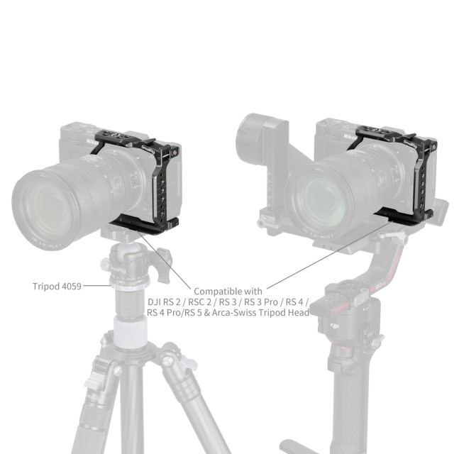 Polovičná klietka SmallRig pre Nikon ZR 5905 je navrhnutá tak, aby zlepšila rozširovateľnosť a zefektívnila montáž gimbalu. Jej ľahká konštrukcia s polovičným krytom umožňuje jednoduchú inštaláciu bez odnímania rýchloupínacej dosky gimbalu DJI RS, čo zjednodušuje prevádzku a šetrí čas. Základňa je vybavená integrovanou rýchloupínacou doskou Arca-Swiss, ktorá umožňuje priamu montáž na statívy typu Arca (ID 5290, 4222B) a gimbaly DJI (RS 2, RSC 2, RS 3 Pro, RS 4 Pro) pre rýchle prechody medzi nastaveniami.
