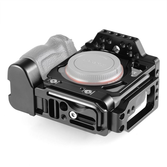 SmallRig Half Cage with Arca L-Bracket for Sony A7III A7RIII 2236 (CCS2236) je inovatívny produkt kombinujúci vlastnosti klietky a držiaka L-Bracket, ktorý spĺňa potreby hybridných fotografov. Bočná aj základná doska je štandardu Arca-Swiss, čo umožňuje rýchle prepínanie medzi horizontálnou a vertikálnou orientáciou snímania. Základná doska sa vysúva na výšku o 20 mm a dokonale prilieha k telu fotoaparátu, čím zabezpečuje pohodlné držanie pri snímaní z ruky. Je vybavená tlačidlom na rýchle uvoľnenie okolo krytu batérie, takže prepínač batérie je bez prekážok. Bočnú dosku možno predĺžiť doľava o 25 mm, ak potrebujete viac miesta na pripútanie alebo uvoľnenie kábla. Pripojte svorku SmallRig HDMI Cable Clamp 2259, ak potrebujete ochrániť kábel HDMI a port. Na hornej strane je viacero otvorov 1/4''-20 a 3/8''-16 a polohovacie otvory Arri, takže môžete pripevniť hornú rukoväť SmallRig 2165 a rameno SmallRig Ball Head Magic Arm 2115 na natáčanie videí.