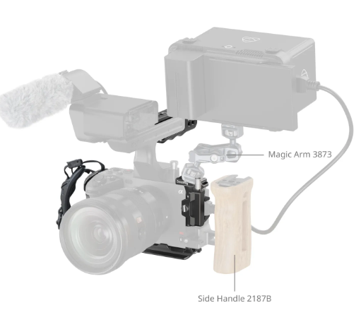 Konštrukcia klietky je vybavená aj závesným ramenom na dvierkach batérie, ktoré zlepšuje pohodlie uchopenia pre malíček, a trojitým uzáverom, ktorý zabraňuje krúteniu počas snímania. Vďaka montážnym otvorom na ľavej a pravej strane je kompatibilná s systémami ovládania objektívov a nastaveniami sledovania zaostrenia.