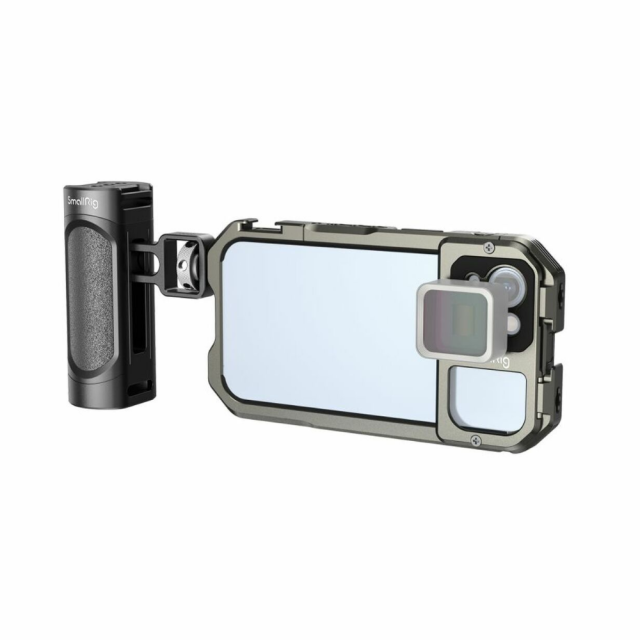 SmallRig handheld Kit pre iPhone 13 3735 je dokonalá riga pre mobilný telefón na natáčanie vlogov, mobilných filmov, reklám atď. Súprava sa dodáva s klietkou špeciálne navrhnutou pre iPhone 13 a bočnou rukoväťou na stabilnejšie natáčanie telefónu z ruky. Klietka je vybavená otvormi so závitom 1/4"-20 proti skrúteniu a cold shoes, ktoré podporujú príslušenstvo ako statív BUT2429, mikrofón 3452 a svetlo LED 3286 atď. Podporuje objektívy s bajonetom M na vylepšenie kvality videa. Vďaka dutej konštrukcii umožňuje prístup k tlačidlám, portom a ultraširokouhlému objektívu iPhonu. Kovová plná klietka so zabudovanými podložkami zabraňuje poškriabaniu, znižuje vibrácie. Klietka umožňuje horizontálne a vertikálne snímanie.