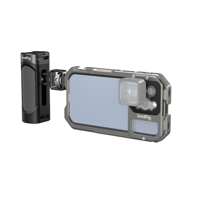 SmallRig Handheld Video Kit pre iPhone 13 Pro 3746 je perfektný rig pre mobilný telefón na natáčanie vlogov, mobilných filmov, reklám atď. Súprava sa dodáva s klietkou špeciálne navrhnutou pre iPhone 13 Pro a bočnou rukoväťou na stabilnejšie natáčanie telefónu z ruky. Klietka je vybavená otvormi so závitom 1/4"-20 proti skrúteniu a studenými pätkami, ktoré podporujú príslušenstvo ako statív BUT2429, mikrofón 3452 a LED svetlo 3286 atď. Podporuje objektívy s bajonetom M alebo 17 mm závitom výmenou zadnej dosky. Vďaka dutej konštrukcii umožňuje prístup k tlačidlám, portom, radaru a ultraširokouhlému objektívu iPhone. Kovová plná klietka so zabudovanými podložkami zabraňuje poškriabaniu, znižuje vibrácie. Klietka umožňuje horizontálne aj vertikálne snímanie.