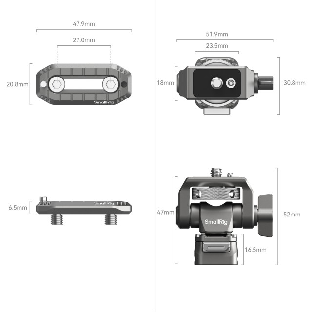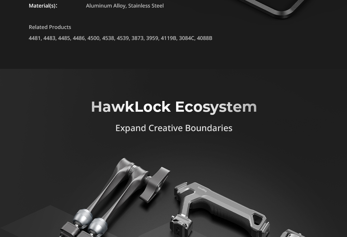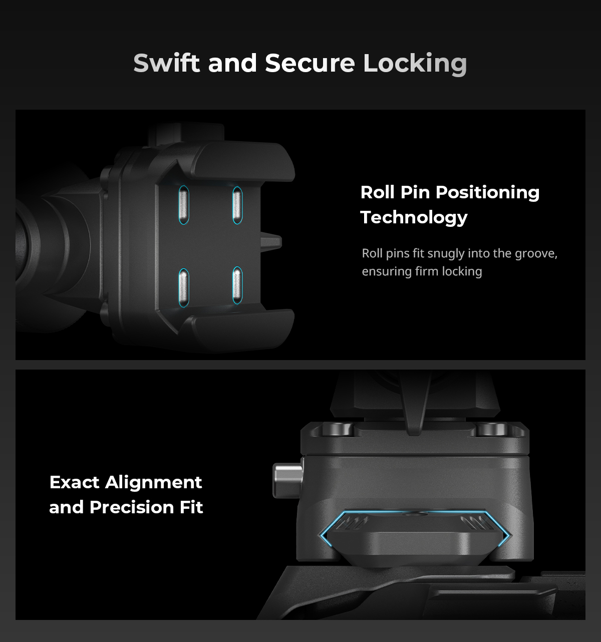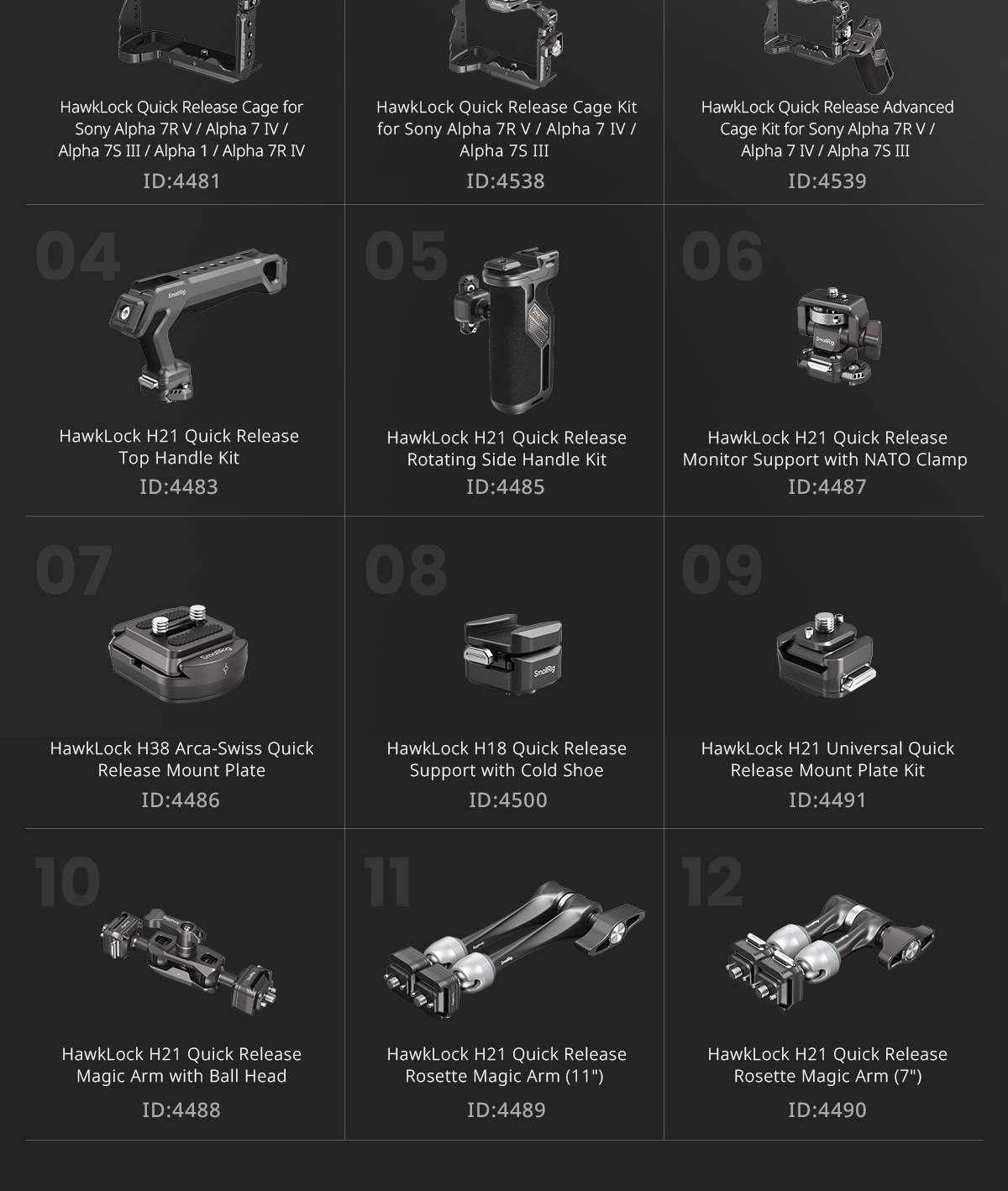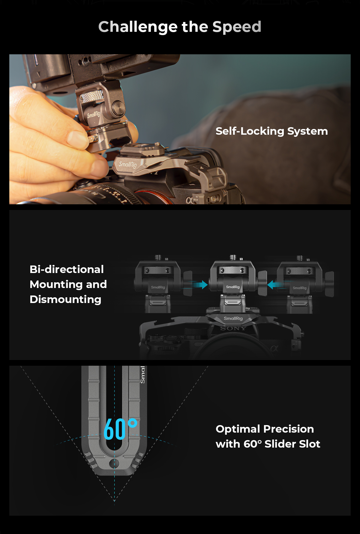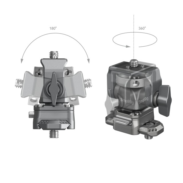 Rýchloupínací držiak monitora SmallRig HawkLock H21 so svorkou NATO 4487 pozostáva z rýchloupínacieho držiaka monitora so svorkou NATO a rýchloupínacej lišty NATO. Stlačením tlačidla sa kolíky roztvoria a koľajnica NATO sa zasunie do drážky. Uvoľnením tlačidla koľajnicu NATO bezpečne zaistíte v držiaku monitora, vďaka čomu je konštrukcia stabilná a proces časovo nenáročný. Skrutku 1/4"-20 na hornej strane možno použiť na upevnenie monitora, mikrofónu, svetla alebo, vďaka zabudovanému pružinovému polohovaciemu kolíku, monitora Ninja V / Ninja V+, aby sa zabránilo vychýleniu. Položka podporuje nastavenie sklonu v uhle 160° a tesnosť osi sklonu možno rýchlo upraviť pomocou gombíka, aby sa lepšie prispôsobila zariadeniam s rôznou hmotnosťou. Zariadenie unesie až 2,5 kg / 5,5 lb a útlm je po 10 000 nakloneniach nižší ako 20 %, vďaka čomu je odolné. nastavenie otočenia o 360° s nastavením tesnosti horizontálnej osi pomocou priloženého šesťhranného kľúča.