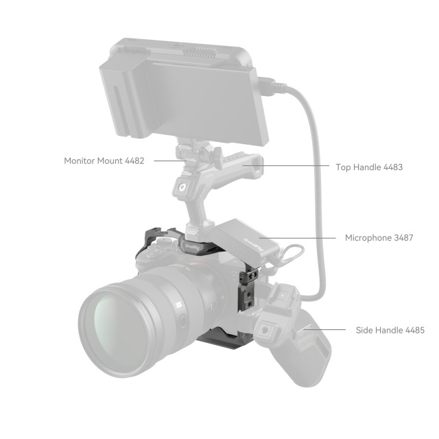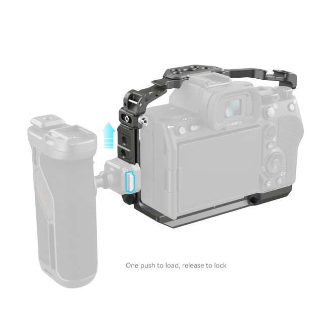 Rýchloupínacia klietka SmallRig HawkLock pre Sony Alpha 7R V / Alpha 7 IV / Alpha 7S III / Alpha 1 / Alpha 7R IV 4481 je navrhnutá tak, aby poskytovala držiaky na príslušenstvo a chránila fotoaparát. Patentovaná samostatne vyvinutá rýchloupínacia štruktúra (s názvom HawkLock) pokrýva studené topánky, koľajnicu NATO a arca swiss, ktorá sa používa s ekologickým príslušenstvom HawkLock na realizáciu pevnej a žiadnej falošnej polohy, jedným stlačením sa načíta, uvoľnením sa uzamkne a zlepší sa účinnosť demontáže. Zamyká fotoaparát prostredníctvom jedného spodného polohovacieho kolíka, jednej skrutky 1/4"-20 a jednej skrutky M2,5 na ľavej strane. Adaptéry bočného zámku je potrebné upraviť v smere inštalácie, aby pasovali na rôzne typy fotoaparátov, potlač s nápisom "A7 IV" je pre Alpha 7 IV a Alpha 7R V, zatiaľ čo potlač s nápisom "A7S III" je pre Alpha 7S III / Alpha 1 / Alpha 7R IV. Zabudované všestranné ochranné dištančné podložky zabraňujú poškriabaniu fotoaparátu. Klietka umožňuje prístup k rozhraniam, voličom, tlačidlám alebo dvierkam batérie. V priestore na batérie sa nachádza vretenový kľúč, ktorý sa prispôsobí zakriveniu fotoaparátu a ponecháva priestor pre malý prst na pohodlné uchopenie. otvory so závitom 1/4"-20, polohovacie otvory ARRI 3/8"-16 a úchyty HawkLock cold shoe podporujú hornú rukoväť 2165C, bočnú rukoväť 2093, držiak monitora 2903, mikrofóny, LED svetlá, monitory atď. Spodná zásuvka QD podporuje ramenný popruh QD. HawkLock Arca-Swiss rýchloupínacia doštička v spodnej časti je kompatibilná s DJI RS 2 / RSC 2 / RS 3 / RS 3 Pro, rýchloupínacou doštičkou (riser plate) stabilizátora DJI RS 2/RSC 2 na snímanie so stabilizátorom a rýchloupínacou doštičkou Arca-Swiss 3154. Otvory na bočných stranách a spodnej časti klietky umožňujú pripevnenie takéhoto príslušenstva, ako je popruh na ruku PAC2456. Okrem toho sa klietka dodáva so zabudovaným magnetickým kľúčom, ktorý uľahčuje demontáž a montáž.