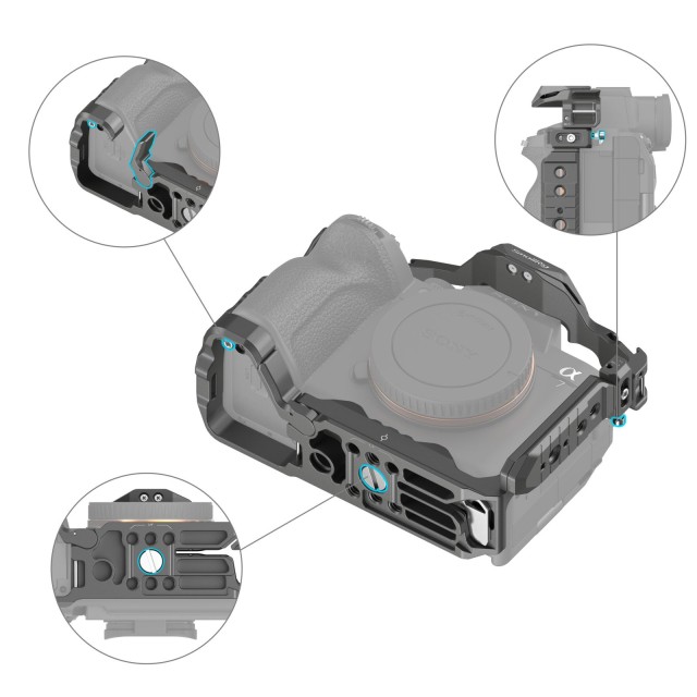 Súprava rýchloupínacej klietky SmallRig HawkLock pre Sony Alpha 7R V / Alpha 7 IV / Alpha 7S III 4538 je navrhnutá tak, aby uľahčovala snímanie pod nízkym uhlom a chránila fotoaparát, pričom ponúka širokú škálu úchytov na príslušenstvo. Obsahuje klietku, svorku na kábel HDMI, lištu NATO a hornú rukoväť. Patentovaná vlastnoručne vyvinutá rýchloupínacia štruktúra (s názvom HawkLock) pokrýva studené topánky, koľajnicu NATO a arca swiss, ktorá sa používa s ekologickým príslušenstvom HawkLock na realizáciu pevnej a žiadnej falošnej polohy, jedným stlačením načítate, uvoľnením zaistíte a zvýšite účinnosť demontáže.