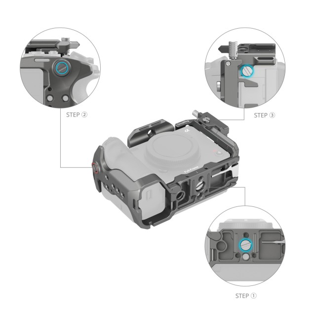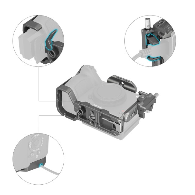 Súprava SmallRig HawkLock Quick Release Cage Kit pre Sony FX3 / FX30 4770 je určená na ochranu fotoaparátu a poskytuje body na upevnenie príslušenstva. Modulárna klietka sa skladá z koľajnice NATO a klietky v tvare U. Koľajnica NATO sa upevňuje na hornej strane pomocou dvoch skrutiek 1/4"-20 a odoberá sa, aby bolo možné nainštalovať originálnu hornú rukoväť XLR; klietka v tvare U sa upevňuje pomocou skrutiek 1/4"-20 na oboch stranách a v spodnej časti, aby sa zabránilo prekrúteniu, s ochranou proti poškriabaniu. Pri dvierkach batérie sa rameno závesu prispôsobí zakriveniu fotoaparátu, aby sa zlepšil zážitok z uchopenia malým prstom. Špeciálna svorka na kábel HDMI chráni rozhrania a zabezpečuje stabilný prenos signálu.