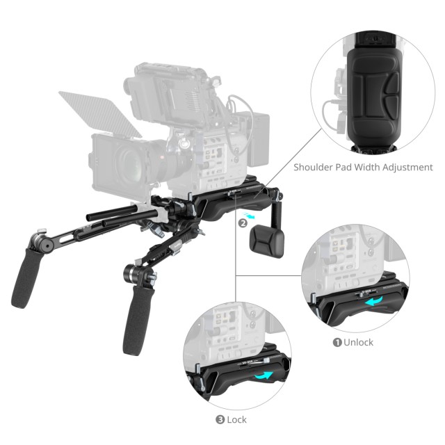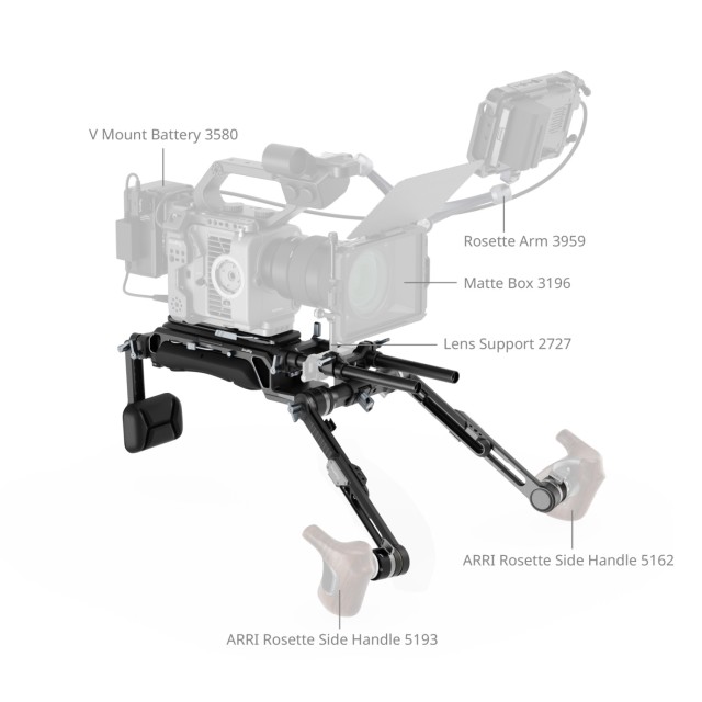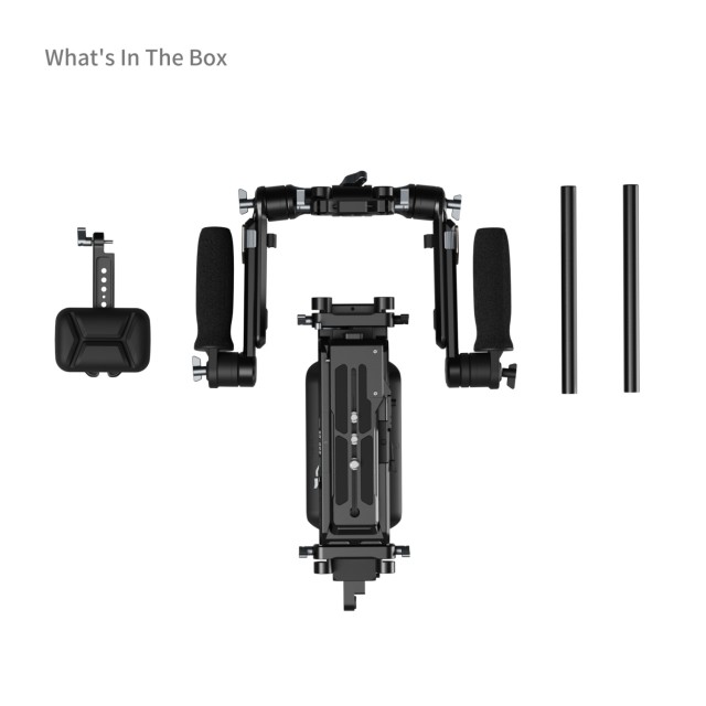 Modulárna konštrukcia: Vybavený štandardnou rozetou ARRI a otočným modulom, tento rig umožňuje používateľom ľahko vymeniť rukoväť tak, aby vyhovovala individuálnym štýlom a preferenciám fotografovania.