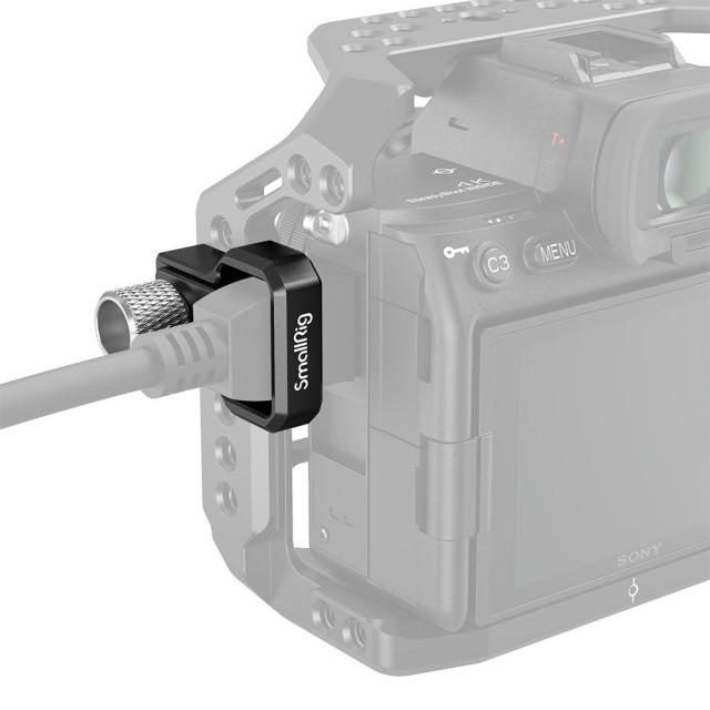 Svorka kábla HDMI SmallRig pre klietku A7S III 3000 je kompatibilná s klietkou SmallRig Cage 2999. Táto svorka, ktorá je navrhnutá tak, aby zabránila náhodnému odpojeniu kábla HDMI fotoaparátu, sa pripevňuje k bočnej strane klietky pomocou skrutky 1/4"-20 a dvoch kolíkov proti pretáčaniu. Posuvný blok sa nastavuje pomocou ľahko uchopiteľnej skrutky 1/4"-20 s vrúbkovaním, ktorú možno utiahnuť tak, aby sa do nej zmestil kábel HDMI s rôznym priemerom. Táto káblová svorka je vyrobená z odolnej hliníkovej zliatiny a dodáva sa s imbusovým kľúčom.