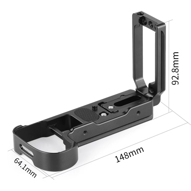 Držiak SmallRig L-Bracket pre fotoaparáty Nikon Z6 a Nikon Z7 apl2258 má modulárnu konštrukciu s prírubami proti skrúteniu, ktoré zabraňujú skrúteniu fotoaparátu. Spodná doska pridáva 16,5 mm výšky na základe pôvodného držiaka na podporu malíčkov. Základná doska aj bočná doska sú kompatibilné s doskami typu Arca s dovetail, ktoré umožňujú montáž fotoaparátu vo vertikálnej alebo horizontálnej polohe. Je vybavená líniou centrovania snímača na každej osi na vyrovnanie fotoaparátu na statívovej hlave a zachováva úplný prístup k batérii a portom fotoaparátu.