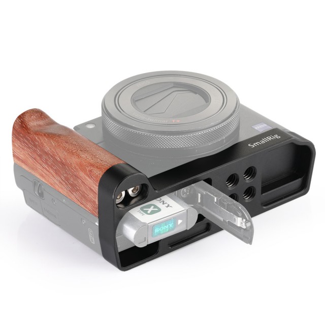 Drevený grip SmallRig 2248 v tvare písmena L je určený pre fotoaparát SONY RX100 M3/M4/M5/M5A. Pevne fixuje fotoaparát pomocou skrutky v spodnej časti. Drevený grip na pravej strane zväčšuje veľkosť úchopu fotoaparátu, ktorý poskytuje lepší zážitok z fotografovania z ruky. Umožňuje tiež odklopenie obrazovky LCD a prístup ku všetkým portom a tlačidlám na fotoaparáte. Okrem toho je vybavený ďalšími štyrmi otvormi so závitom 1/4''-20 na spodnej strane na pripevnenie statívových doštičiek, ako je napríklad doštička SmallRig Arca 2146. Navyše je kompatibilný s popruhom Peak Design. Vďaka ľahkým a kompaktným vlastnostiam zachováva vreckový dizajn fotoaparátu.