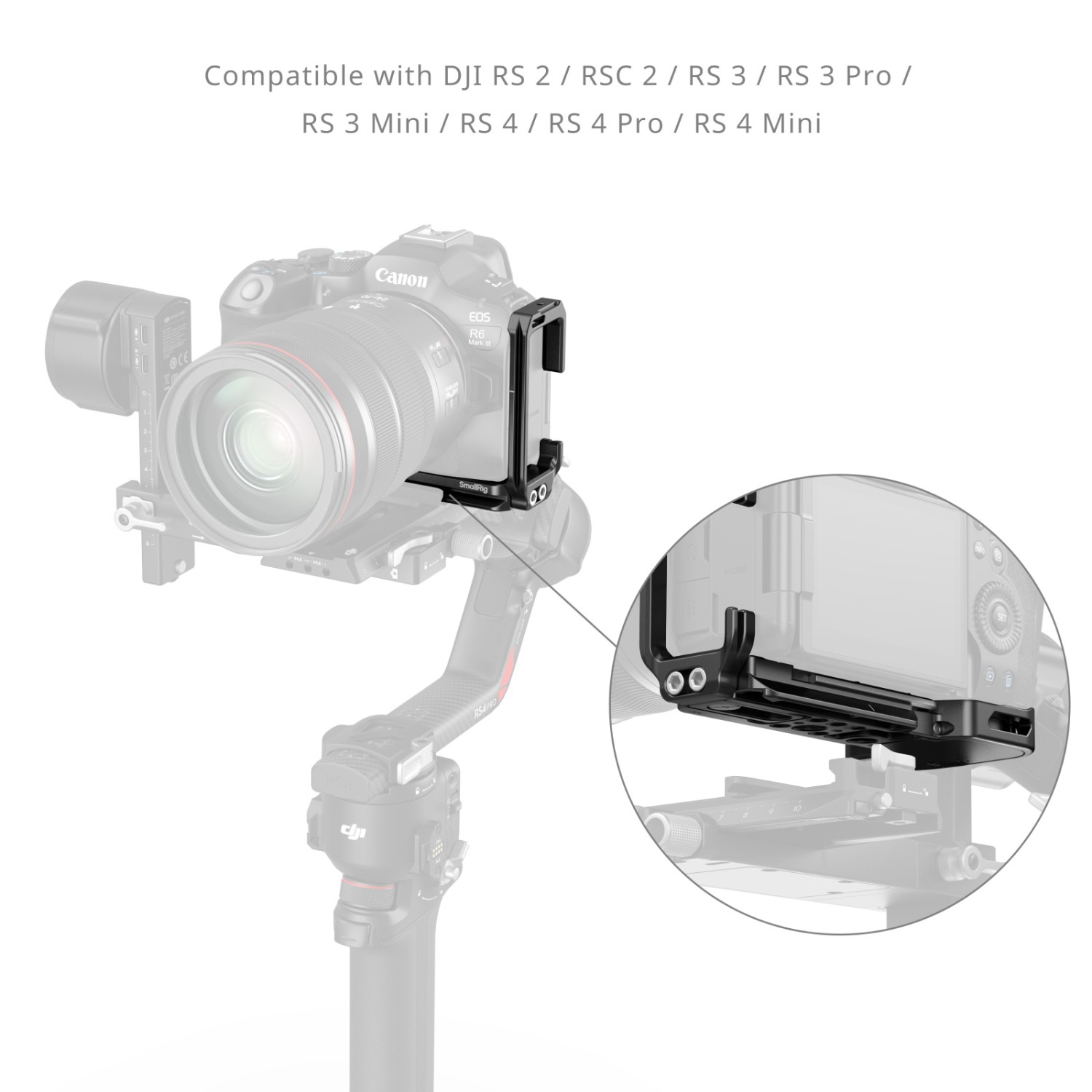 Malá L-tvarová montážna doska SmallRig so slotom AirTag pre Canon EOS R6 Mark III / R6 Mark II / R5 Mark II 5962 je navrhnutá tak, aby uľahčila rýchly prechod medzi horizontálnym a vertikálnym snímaním a zároveň poskytovala funkciu sledovania fotoaparátu.