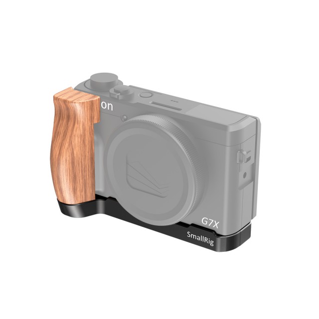 Drevený grip SmallRig v tvare písmena L pre Canon G7X Mark III LCC2445 poskytuje pohodlný grip na snímanie z ruky. K fotoaparátu sa pripevňuje pomocou 1/4 skrutky a na spodnej strane má viacero otvorov so 1/4 závitom na upevnenie na statív. Na boku ponecháva aj otvor pre malý popruh na ruku. Celý výrobok je tvarovo prispôsobený a s krásnou povrchovou úpravou.