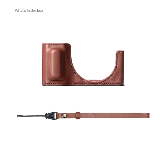 Puzdro je vyrobené z prvotriednej kože a presne navrhnutého rámu z hliníkovej zliatiny. Pevne obopína boky a spodnú časť fotoaparátu, čím poskytuje komplexnú ochranu a zároveň zabezpečuje neobmedzený prístup ku všetkým portom, tlačidlám a priestoru pre batériu. Je kompatibilné s originálnym krytom objektívu.