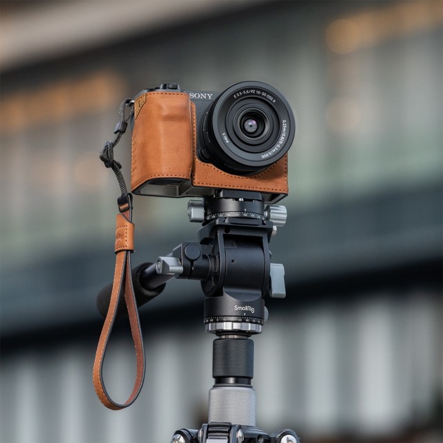 Súprava kožených puzdier SmallRig pre Sony ZV-E10 II (hnedá) 4889 je navrhnutá tak, aby chránila váš fotoaparát a zároveň zachovala jeho klasický vzhľad. Súprava obsahuje kožené puzdro a remienok na zápästie, ktoré sú vyrobené z odolnej a priedušnej vrchnej kože. Zabudovaná penová rukoväť poskytuje ergonomický úchop s vyššou bezpečnosťou, zatiaľ čo plyšová vnútorná podšívka chráni fotoaparát pred poškriabaním. Skrutka s palcom 1/4"-20 v spodnej časti umožňuje montáž fotoaparátu bez použitia náradia. Konštrukcia puzdra zabezpečuje voľný prístup k rozhraniam a tlačidlám fotoaparátu, ako je priehradka na batériu, režim zaostrovania a slot na kartu. Vďaka integrovanému vnútornému rámu z leteckého hliníka zabezpečuje puzdro nielen pevné uchytenie, ale aj ochranu fotoaparátu pred nárazmi a otrasmi. Zaisťovacia skrutka v spodnej časti je vybavená zabudovaným otvorom so závitom 1/4"-20 na priamu montáž na statív bez nutnosti demontáže puzdra. Súprava navyše obsahuje remienok na zápästie z pravej kože na pohodlnú a spoľahlivú prepravu fotoaparátu.