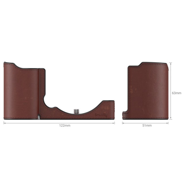 Kožené polovičné puzdro SmallRig pre Sony ZV-E10 3527 je navrhnuté tak, aby poskytovalo ochranu a lepšie uchopenie. Ručne vyrobené s pravou vrchnou vrstvou kože a podšívkou z mikrovlákna, ktorá zabraňuje zašpineniu oblečenia od potu. Tvarovo prispôsobené puzdro sa pripevňuje k spodnej časti fotoaparátu pomocou skrutky s D-krúžkom 1/4''-20 a neblokuje výklopný displej ani iné spodné časti a porty. Je vyrobené z ľahkej leteckej hliníkovej zliatiny, jeho spodná doska zachováva prístup k výmene batérie a je vybavená otvorom so závitom 1/4''-20 na pripevnenie k statívu bez nutnosti demontáže polovice puzdra.