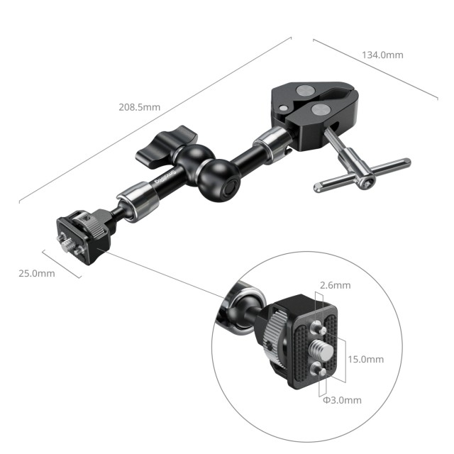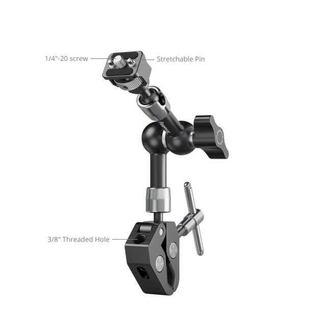 SmallRig Magické rameno so svorkou v tvare kraba (7") 5310 pozostáva z magického ramena a svorky v tvare kraba. Jeden koniec je vybavený skrutkou 1/4"-20 a výsuvnými kolíkmi, ktoré sú vybavené vrutmi s ramenom na jednoduché upevnenie bez použitia náradia spolu s ďalším zabezpečovacím otvorom na dotiahnutie pomocou priloženého imbusového kľúča.