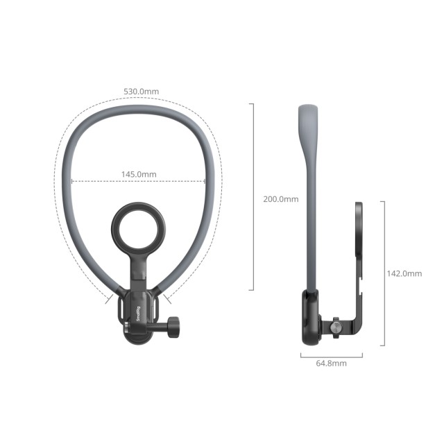 Držiak na krk kompatibilný s technológiou MagSafeSmallRig 5127 je odborne navrhnutý na snímanie POV pomocou mobilných telefónov. Umožňuje rýchle nosenie jedným dotykom s tlačidlom na odomknutie pre bezproblémové používanie. Nákrčník má celkovú dĺžku 600 mm (23,6 palca) a môže sa pochváliť zjednodušeným dizajnom pre pohodlné nosenie.
