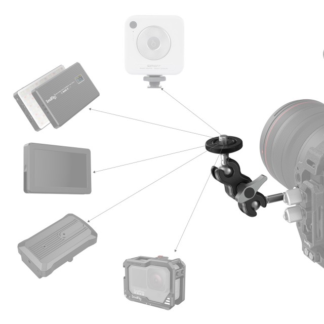 SmallRig rameno Mini Magic Arm s univerzálnou ballhead 3238 sa skladá z dvoch ballheads so skrutkou 1/4"-20 a svorky ballhead. Na jednom konci ho možno pripevniť k hornej alebo bočnej časti klietky a na druhom k monitoru. Zabudované vankúšiky zabraňujú poškriabaniu. Je flexibilná a pohodlná na nastavenie vhodného uhla. Kompaktné a priestorovo úsporné magic arm sa hodí na snímanie pomocou ľahkého vybavenia.