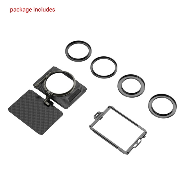SmallRig Mini Matte Box Lite 3575 je určený pre digitálne zrkadlovky a bezzrkadlovky, aby zabránil slnečnému alebo inému svetlu spôsobovať odlesky. Jeho svorkový konektor funguje s adaptérovými krúžkami rôznych veľkostí (Φ52-95 mm; Φ55-95 mm; Φ58-95 mm; Φ62-95 mm; Φ67-95 mm; Φ72-95 mm; Φ77-95 mm; Φ82-95 mm; Φ86-95 mm) alebo sa pripája priamo na objektív Φ95 mm; jeho adaptérový krúžok je vhodný pre CPL, ND filter a iné kruhové filtre do Φ92,5 mm. Pomocou zásobníka na filtre (ID: 3319/3320) možno rýchlo inštalovať s 4 x 5,65"/4 x 4" zásuvnými filtrami s hrúbkou 4 mm