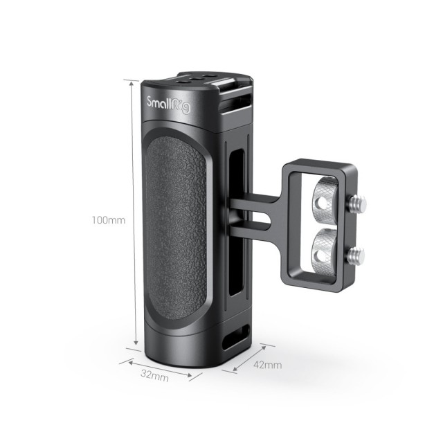 Bočná rukoväť SmallRig Mini (skrutky 1/4"-20) 2916 je určená pre bezzrkadlovky, digitálne fotoaparáty a iné malé fotoaparáty. Dve skrutky 1/4"-20 sú pripevnené k bočnej strane klietky. Rukoväť podporuje ďalšie možnosti montáže - blesk a mikrofón možno namontovať cez studenú päticu 1241 a popruh na zápästie, napríklad 2456, možno namontovať cez očko, aby sa zabránilo náhodnému pádu fotoaparátu. Vysoko nastaviteľné, aby sa prispôsobili rôznej výške klietky a podporovali rýchle prepínanie z ľaváka na praváka prostredníctvom zabudovaného kľúča. vyrobené z hliníkovej zliatiny a plastu(PC+ABS) s ergonomickým dizajnom poskytuje prenosná rukoväť filmárom plynulé a pohodlné natáčanie.