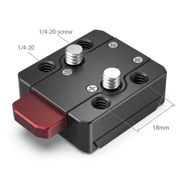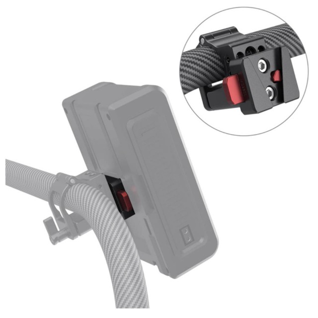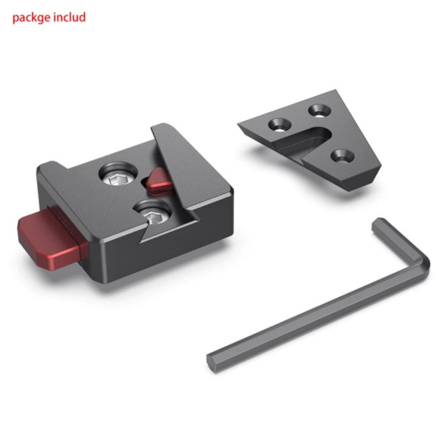 Dodáva sa so samicou V-Dock a samcom V-Lock. Na dokovacej jednotke Female V-Dock sú 2 montážne otvory 1/4-20. Túto zostavu môžete pripojiť priamo k súprave klietky SmallRig na kameru, rámu monitora SmallRig alebo k držiaku SmallRig na ramennú podložku. Okrem toho môžete túto montážnu súpravu pripevniť k závesu batérie SmallRig MD2802, ktorý je určený na nastavenie uhla batérie s touto zostavou na napájanie všetkého príslušenstva, čím sa minimalizuje hmotnosť kamery. Zámok V-Lock s tromi otvormi M3 možno použiť ako náhradu pôvodného zámku V-Lock dodávaného s batériou V-Mount.