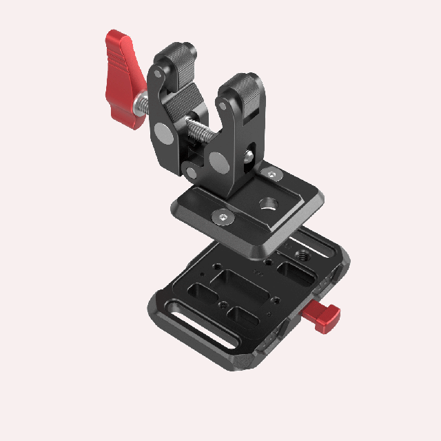SmallRig Mini V Mount Battery Plate with Crab-Shaped Clamp 2989 s použitím štandardného V držiaka je vhodný pre väčšinu batérií s V držiakom, aby zabezpečil väčšiu výdrž batérie pre vašu kamerovú súpravu s napájacím portom vašej batérie. Dodáva sa so svorkou v tvare kraba, ktorá je vhodná pre tyče s priemerom od 15 mm do 30 mm a pomáha pripevniť batériu s držiakom V na statív, svetelný stojan alebo ručný krúžok pre gimbaly. Samotná doska je vybavená dvomi zápustnými otvormi 1/4-20", dvomi otvormi so závitom 1/4-20" a štyrmi otvormi so závitom M4, ktoré možno použiť na pripevnenie svorky s dvojitou tyčou, magic arm alebo iného príslušenstva, podľa potreby pomôže pripevniť batériu s držiakom V k vašej súprave fotoaparátu. Vďaka konštrukcii v tvare miniatúry je ľahšia a prenosnejšia.