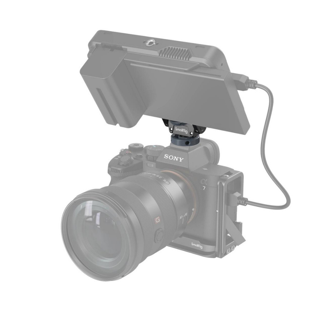 SmallRig držiak Monitor Mount Lite s cold shoe 3809 je určený na pripevnenie monitora. Jeho spodná cold shoe je vhodná pre hot shoe fotoaparátu alebo cold shoe rukoväte; horná skrutka 1/4"-20 podporuje monitor, mikrofón, svetlo atď. Môže sa otáčať o 360° a nakláňať o 180°, pričom stupeň utiahnutia sa nastavuje pomocou kľúča. Otvor so závitom 1/4"-20 v spodnej časti umožňuje pripevniť rameno Magic Arm 2070, guľovú hlavu 1135 atď.; horná a spodná skrutka s palcom má otvory na kľúč na jednoduchú demontáž. Taktiež je jeho horná časť vybavená ochrannou gumovou podložkou pre väčšie trenie, aby sa zabránilo vychýleniu.