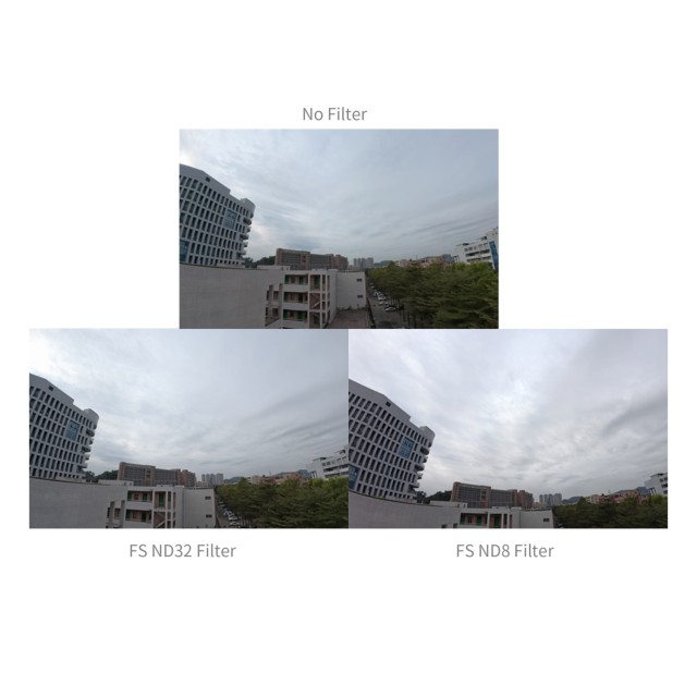 Súprava obsahuje štyri základné filtre pre rôzne podmienky snímania: filter FS ND8 pre situácie s jasným denným svetlom na dosiahnutie vyváženej expozície; filter FS ND16 pre mierne osvetlenie, ktorý pomáha zachovať detaily svetiel a tieňov; filter FS ND32 pre silné svetelné podmienky alebo kreatívne dlhé expozície, ako sú svetelné stopy a efekty rozmazania pohybu; a filter CPL, ktorý účinne eliminuje nežiaduce odrazy od nekovových povrchov, ako je voda a sklo, a zároveň zlepšuje viditeľnosť pod vodou a cez okno.