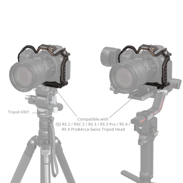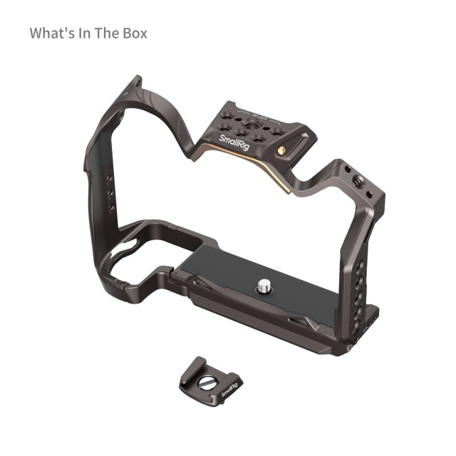 Klietka SmallRig "Night Eagle" pre Nikon Z 6III 4521, ktorá poskytuje ochranné puzdro a všestranné možnosti rozšírenia fotoaparátu. Klietka sa vyznačuje moderným dizajnom s elegantnými krivkami, jemným zlatým zvýraznením a novou pištoľovo hnedou farbou. Využíva trojbodový uzamykací systém, ktorý zabezpečuje fotoaparát Nikon Z 6III pomocou spodnej skrutky 1/4"-20 a dvoch skrutiek M2,5 na oboch stranách, pričom zabudované silikónové podložky zabraňujú poškriabaniu fotoaparátu. Poskytuje voľný prístup k tlačidlám, slotom na karty, výklopným obrazovkám a priehradkám na batérie. Odnímateľný držiak studenej pätice je v spodnej časti vybavený polohovacími kolíkmi proti vychýleniu. Možno ho pripevniť na boky a hornú časť klietky, čo umožňuje všestranné rozšírenie o mikrofóny, svetlá a ďalšie príslušenstvo. Klietka je vybavená rôznymi rozširujúcimi rozhraniami, ako sú otvory so závitom 1/4"-20, otvory so závitom 3/8"-16 a polohovacie otvory ARRI, ktoré sú kompatibilné s bočnými držiakmi (ID 2093, 4015), hornými držiakmi (ID 3765), držiakmi na monitor (ID 2903, 2904), statívmi (ID 3989, 4465), držiakmi powerbanky (ID 2336) a mini V-mount batériovými doskami (ID 2987). Zabudované polohovacie otvory 1/4"-20 po stranách umožňujú upevnenie príslušenstva, ako je svorka na jednu tyč (ID 3598), magické rameno (ID 3873) a bočná rukoväť (ID 4346). Na ľavej strane je zabudovaná lišta NATO na rýchle pripevnenie a odpojenie bočných rukovätí (ID 3847, 4017). Klietka má tiež zabudované otvory na zápästné popruhy na použitie so zápästnými popruhmi (ID 3848, 2456), ako aj integrované rozhranie QD kompatibilné s ramenným popruhom (ID 4118). Rýchloupínacia doštička Arca-Swiss na spodnej strane je kompatibilná so statívom typu Arca a gimbalmi DJI RS 2 / RSC 2 / RS 3 / RS 3 Pro / RS 4 / RS 4 Pro, čo umožňuje jednoduchý prechod medzi gimbalmi, ručnými a statívovými nastaveniami. Plochý kľúč s dvoma hlavami na základni navyše zjednodušuje montáž a demontáž.