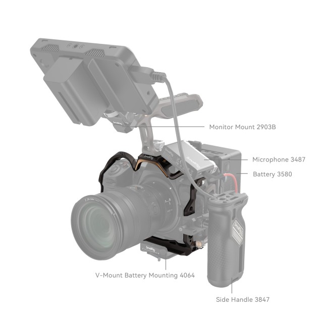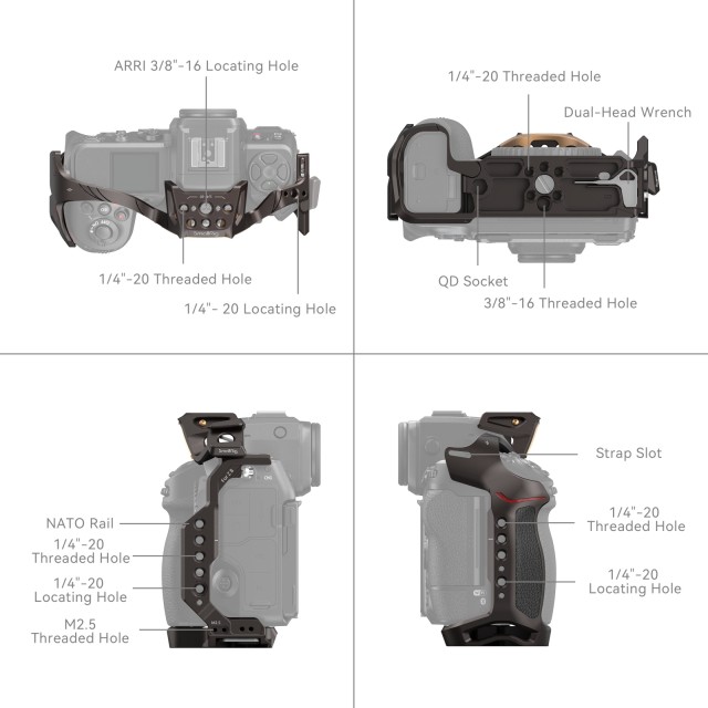 Klietka SmallRig "Night Eagle" pre Nikon Z 8 4316 je určená na ochranu fotoaparátu a pripevnenie príslušenstva. Má úplne nový dizajn: pištoľovo hnedé krivky pretkané zlatou farbou, ktoré dopĺňajú klasický štýl fotoaparátu Nikon Z 8. Klietka využíva trojbodový systém uzamykania: zabezpečte svoj fotoaparát Nikon Z 8 pomocou spodnej skrutky 1/4"-20 a dvoch skrutiek M2,5 na oboch stranách. Zabudované podložky zabraňujú poškriabaniu fotoaparátu. Neobmedzený prístup k tlačidlám, slotom na karty, výklopnému displeju a krytu batérie. Odnímateľný držiak Cold Shoe Mount pre LED svetlo videa alebo mikrofón je vybavený polohovacím kolíkom, ktorý zabraňuje vychýleniu. Medzi jeho rozhrania pre montáž príslušenstva patria závitový otvor 1/4"-20, závitový otvor 3/8"-16 a polohovací otvor ARRI 3/8"-16. Podporuje bočné rukoväte 2093, hornú rukoväť 3765, držiaky na monitor 2903 a 2904, rýchloupínacie dosky Manfrotto 1280 a 2458, montážnu svorku pre prenosné napájacie banky 2336 a mini V-Mount batériovú dosku 2987. Bočný polohovateľný otvor 1/4"-20 je vhodný pre svorku na jednu tyč 3598 a rameno Magic Arm s dvojitou guľovou hlavou 3873 a koľajnica NATO na ľavej strane umožňuje rýchle pripojenie bočných rukovätí NATO 3847 a 4017. Okrem toho sú tu otvory na popruhy pre ručné popruhy 3848 a 2456; a zásuvka QD pre sponu QD na popruh. Rýchloupínacia doštička Arca-Swiss na spodnej strane podporuje statív typu Arca alebo stabilizátory DJI RS 2 / RSC 2 / RS 3 / RS 3 Pro na rýchle prepínanie medzi režimami stabilizátora, ručného držania a statívu. Súčasťou balenia je aj obojstranný kľúč na jednoduchú demontáž a montáž.