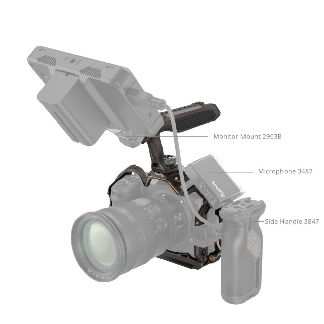 Súprava SmallRig "Night Eagle" Cage Kit pre Nikon Z 6III 4522 je navrhnutá tak, aby poskytovala vylepšené snímanie pod nízkym uhlom, ochranné puzdro a všestranné možnosti rozšírenia fotoaparátu. Klietka sa vyznačuje moderným dizajnom s elegantnými krivkami, jemným zlatým zvýraznením a novou pištoľovo hnedou farebnou schémou. Súprava obsahuje klietku, hornú rukoväť, svorku na kábel HDMI a USB-C a držiak na studenú päticu. Káblové svorky využívajú konštrukciu typu "stlač a preklop", ktorá umožňuje jednoduchý prístup k rozhraniam bez nutnosti ich demontáže a zabraňuje náhodnému prerušeniu signálu, čím zabezpečuje stabilný prenos signálu. Odnímateľný držiak so studenou päticou je v spodnej časti vybavený polohovacími kolíkmi proti vychýleniu.