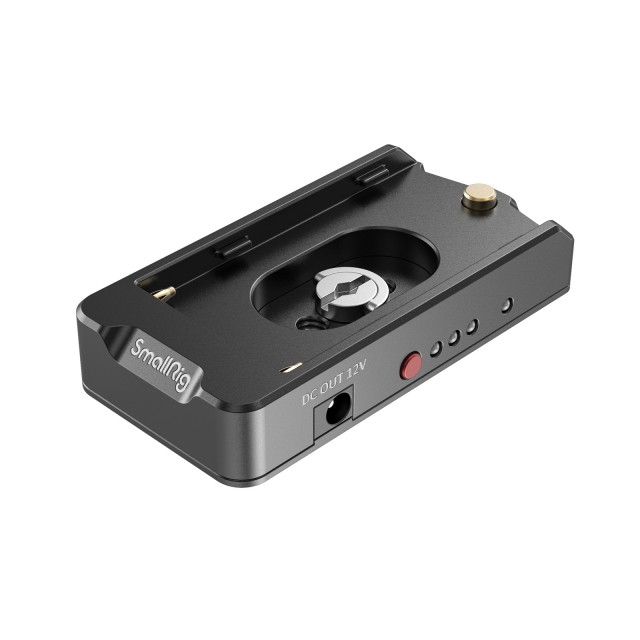 Adaptér SmallRig NP-F Battery Adapter Plate EB2504 má dva výstupy jednosmerného prúdu 7,4 V a 12 V na napájanie fotoaparátu alebo iných zariadení, čo výrazne predlžuje čas snímania. Je vyrobený z odolného hliníka a na spodnej strane má mäkkú gumovú podložku, ktorá zabraňuje krúteniu. Dosku môžete pripevniť k zostave fotoaparátu pomocou skrutky s palcom 1/4"-20 alebo dvoch šesťhranných skrutiek 1/4"-20. Na bočnej strane dosky je indikátor pripojenia batérie (modrý) a trojstupňový indikátor životnosti batérie (žltý) na kontrolu stavu nabitia. Ak stlačíte červené tlačidlo na boku, indikátory životnosti batérie sa rozsvietia na tri sekundy a posledný indikátor začne blikať na úrovni 10 %, aby vás upozornil na vybitú batériu.