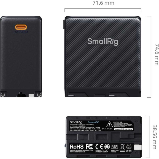 Nabíjateľná batéria SmallRig NP-F970 USB-C je vysokokapacitná, vysoko výkonná, všestranná a inteligentná batéria s priamym nabíjaním a kapacitou 10500 mAh (76,65Wh). Jej veľká kapacita zaručuje dlhotrvajúcu energiu, ktorá spĺňa požiadavky na napájanie počas snímania. Hlavný port v spodnej časti batérie môže napájať rôzne zariadenia, ako sú fotoaparáty, LED videosvetlá, monitory, motorizované posuvníky a iné. Je tiež vybavená jedným portom USB-C a jedným portom USB-A, ktoré umožňujú nabíjanie elektronických zariadení, ako sú smartfóny, tablety a iné elektronické zariadenia. Port USB-C funguje ako vstup aj výstup s maximálnym výkonom 36 W. Nabíjanie batérie pomocou portu USB-C trvá len 3,5 hodiny, čo umožňuje efektívne vytváranie. Port USB-A poskytuje výstupnú funkciu s maximálnym výkonom 27 W, čím batérii dodáva viac funkcií vďaka rôznym rozhraniam. Porty USB-C a USB-A majú paralelné obvody, čo umožňuje súčasné rýchle nabíjanie dvoch zariadení. Táto batéria je vybavená aj dotykovými tlačidlami a displejom zobrazujúcim úroveň nabitia batérie, ktorý poskytuje presné informácie o úrovni nabitia batérie na jednoduché sledovanie stavu batérie v každom okamihu. Tieto batérie sa vyznačujú inovatívnou kombináciou špičkovej technológie a štýlových dizajnových prvkov, pričom majú farebný vonkajší dizajn, ktorý zvyšuje ich vizuálnu príťažlivosť. Okrem toho je táto batéria vybavená vysokokvalitnými batériovými článkami a inteligentnými riadiacimi čipmi a je vybavená viacerými ochrannými funkciami pre vaše tvorivé snahy.