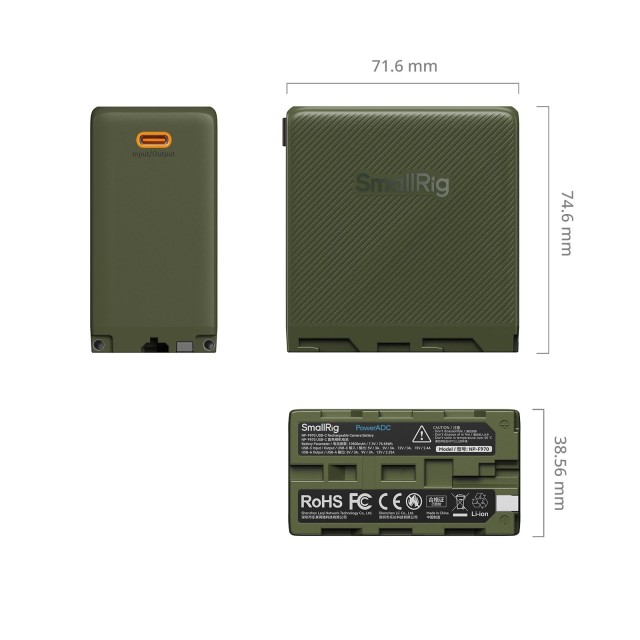 Nabíjateľná batéria SmallRig NP-F970 USB-C je vysokokapacitná, vysoko výkonná, všestranná a inteligentná batéria s priamym nabíjaním a kapacitou 10500 mAh (76,65Wh). Jej veľká kapacita zaručuje dlhotrvajúcu energiu, ktorá spĺňa požiadavky na napájanie počas snímania. Hlavný port v spodnej časti batérie môže napájať rôzne zariadenia, ako sú fotoaparáty, LED videosvetlá, monitory, motorizované posuvníky a iné. Je tiež vybavená jedným portom USB-C a jedným portom USB-A, ktoré umožňujú nabíjanie elektronických zariadení, ako sú smartfóny, tablety a iné elektronické zariadenia. Port USB-C funguje ako vstup aj výstup s maximálnym výkonom 36 W. Nabíjanie batérie pomocou portu USB-C trvá len 3,5 hodiny, čo umožňuje efektívne vytváranie. Port USB-A poskytuje výstupnú funkciu s maximálnym výkonom 27 W, čím batérii dodáva viac funkcií vďaka rôznym rozhraniam. Porty USB-C a USB-A majú paralelné obvody, čo umožňuje súčasné rýchle nabíjanie dvoch zariadení. Táto batéria je vybavená aj dotykovými tlačidlami a displejom zobrazujúcim úroveň nabitia batérie, ktorý poskytuje presné informácie o úrovni nabitia batérie na jednoduché sledovanie stavu batérie v každom okamihu. Tieto batérie sa vyznačujú inovatívnou kombináciou špičkovej technológie a štýlových dizajnových prvkov, pričom majú farebný vonkajší dizajn, ktorý zvyšuje ich vizuálnu príťažlivosť. Okrem toho je táto batéria vybavená vysokokvalitnými batériovými článkami a inteligentnými riadiacimi čipmi a je vybavená viacerými ochrannými funkciami pre vaše tvorivé snahy.