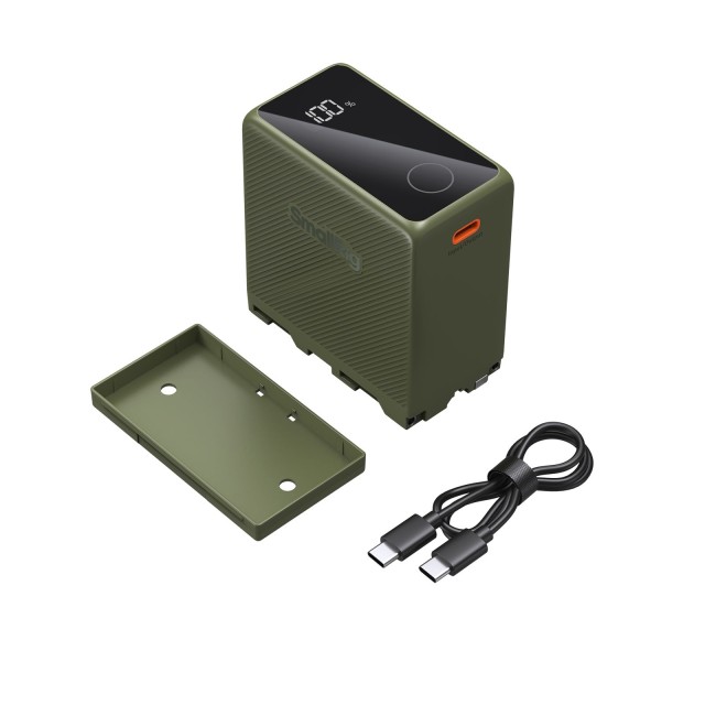 Batéria typu NP-F970 s kapacitou 10500 mAh/76,65wh na dlhšie používanie, pripojenie USB-C a USB-A na všestranné nabíjanie, podpora rýchleho nabíjania USB-C PD 36W na rýchle 3,5-hodinové plné nabitie, ako aj dotykové tlačidlá a displej na jednoduché monitorovanie úrovne nabitia batérie. K dispozícii od 21. 05. 2024.