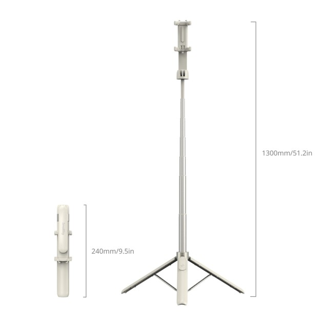 Prenosná selfie tyč SmallRig Tripod ST-25 White 4730 má všestranný dizajn 2 v 1, ktorý kombinuje funkcie selfie tyče a statívu s nastaviteľnou dĺžkou od 370 mm do 1300 mm. Skladacia svorka na telefón sa prispôsobí telefónom iPhone aj Android a ponúka širokú kompatibilitu. Vďaka zabudovanej studenej pätici a závitovej skrutke 1/4"-20 na svorke telefónu umožňuje jednoduché rozšírenie na pripojenie príslušenstva, ako sú mikrofóny a osvetlenie, na rozšírenie možností snímania. Okrem toho sa výrobok dodáva s dobíjacím diaľkovým ovládaním Bluetooth, ktoré zaručuje stabilné bezdrôtové pripojenie s účinným dosahom až 10 metrov, čím používateľom poskytuje väčšiu voľnosť pohybu pri snímaní. Držiak telefónu ponúka možnosť otáčania o 360°, zatiaľ čo nosné rameno umožňuje nastavenie uhla v rozsahu 180°, aby sa prispôsobilo širokému rozsahu uhlov snímania. Aj základňa statívu je vybavená tlačidlom na jedno kliknutie na rýchle a bezproblémové nastavenie. Pohodlne sa skladá do kompaktných rozmerov len 60,0 x 30,0 x 240,0 mm, vďaka čomu je ideálny na cestovanie alebo dobrodružstvá v prírode.