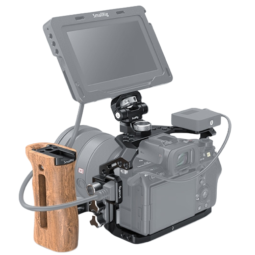 Súprava SmallRig Cage Kit 3421 je určená výhradne pre fotoaparát Sony Alpha 7S III A7S III A7S3.Obsahuje klietku pre Sony A7S3 2999, svorku HDMI kábla pre klietku A7S III 3000, držiak na monitor s držiakom Cold Shoe 2905, rýchloupínaciu bezpečnostnú lištu (46 mm) 1409, otočnú nato rukoväť HTN2362 a univerzálnu drevenú bočnú rukoväť HSN2093C.Ponúka kameramanovi množstvo možností podľa potrieb pri natáčaní, preto je pre kameramana veľmi výhodná a pohodlná.