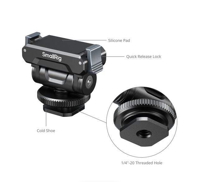 Pripevnite a napájajte svoj DJI Osmo Pocket 3 pomocou adaptérového taniera SmallRig Battery Adapter Plate, ľahkej hliníkovej základne s hmotnosťou 34 g, ktorá je vybavená skladacou 2-ramennou svorkou, integrovaným rýchloupínacím tanierom typu Arca, 1/4"-20 protiskrutkovacím závitom a priechodným USB-C nabíjacím konektorom (samec-samica) so silikónovou výstelkou pre bezškrabkové uchopenie a stabilnú prevádzku v ruke alebo na statíve.