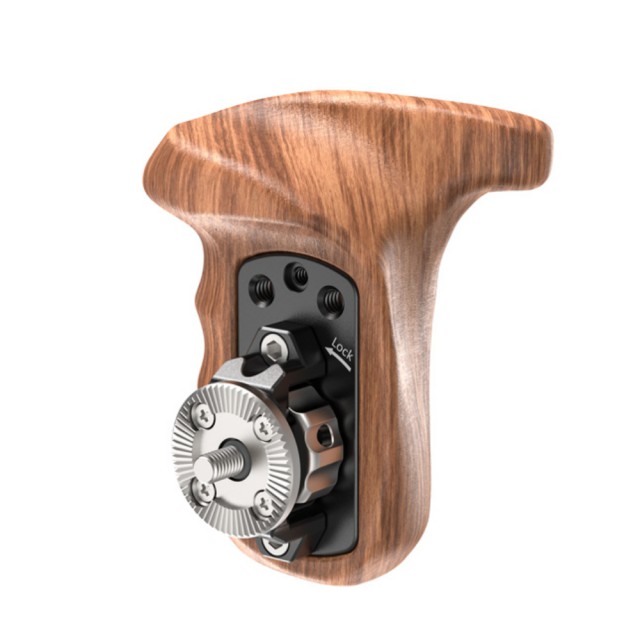 Designer: Yetta White SmallRig Right Side Wooden Grip with Arri Rosette 1941 is an extremely handcrafted rosewood grip, which is applied in shoulder mounting system or handheld shooting. You can adjust the position of Arri rosette up and down within a certain range according to your need. It is lightweight and exquisite, very comfortable to be held with the smooth surface. Note: The wooden handgrip is made of natural rosewood without any painting, thus the color will be a little different from the website. Key Features: 1. Made of handcrafted rosewood, comfortable and attractive 2. Applied in handheld shooting and shoulder mounting system 3. Adjustable position of Arri rosette up and down within a certain range 4. Connected via rosette, more secure Compatibility: Camera accessories with Arri Rosette Package Includes: 1 x Right Side Wooden Grip with Arri Rosette 2 x 1/4"-20 Screw Product Dimensions: 97x76x100mm Net Weight: 251g Package Size: 160x120x70mm Package Weight: 270g Material(s): Aluminum Alloy + Wooden(Wood)