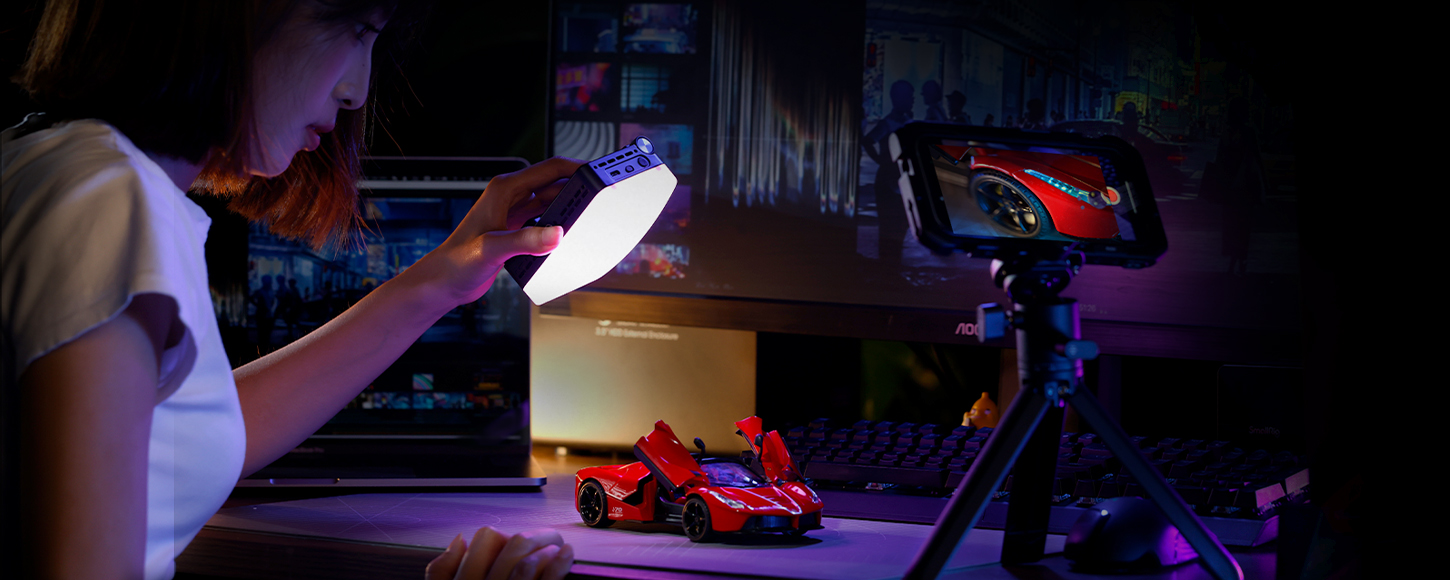 Všestranné osvetlenie RGB+CCT: Vlastnosti: CRI 96, TLCI 99, nastaviteľná dvojfarebná teplota od 2500 K do 10000 K, viac ako 36 000 farieb a 14 zabudovaných svetelných efektov. Ideálne na fotografovanie zátiší, potravín a kreatívne osvetlenie portrétov.