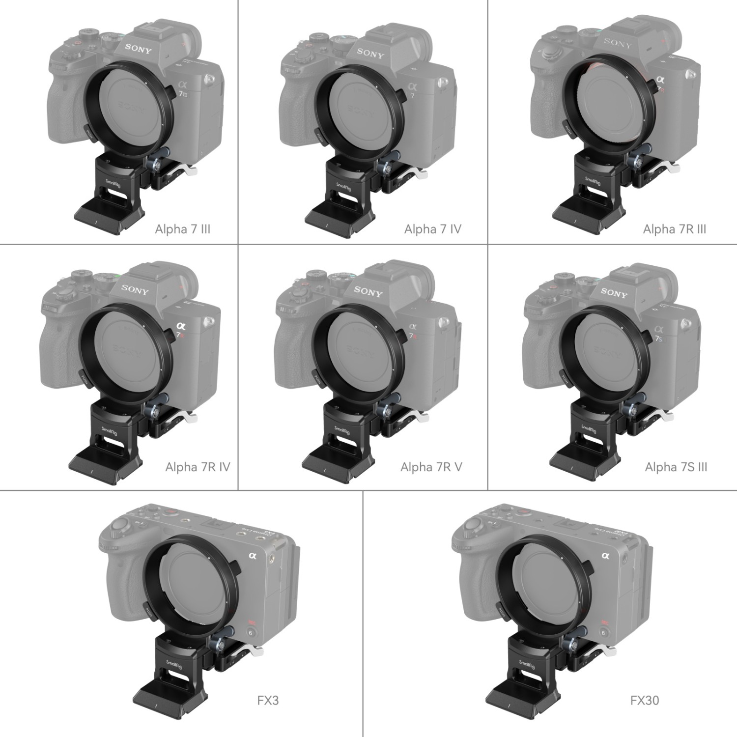 Súprava SmallRig s otočnou montážnou doskou z horizontálnej na vertikálnu polohu pre Sony Alpha 1 / Alpha 7 / Alpha 9 / FX Series 4244 je navrhnutá na rýchle prepínanie medzi horizontálnym a vertikálnym snímaním bez nastavovania optickej osi objektívu. Zachováva úplný prístup k výklopnému displeju LCD a portom a je vybavená zabudovanými podložkami, ktoré zabraňujú poškriabaniu a skrúteniu. Rýchloupínacia doštička Arca-Swiss v priebehu niekoľkých sekúnd uzamkne alebo uvoľní fotoaparát alebo klietku a je vhodná pre gimbaly DJI série RS. Doska na uchytenie obojku objektívu, ktorá je kompatibilná so statívmi Arca-type / Manfrotto RC2 a gimbalmi DJI série RS, sa môže otočiť o 90 stupňov jednoduchým odomknutím gombíka na prepínanie medzi horizontálnym a vertikálnym snímaním; jej spodné otvory so závitom 1/4"-20 a 3/8"-16 podporujú aj iné rýchloupínacie dosky. Okrem toho je v základnej doske magnetický dvojhlavý kľúč na jednoduchú inštaláciu a uvoľnenie.