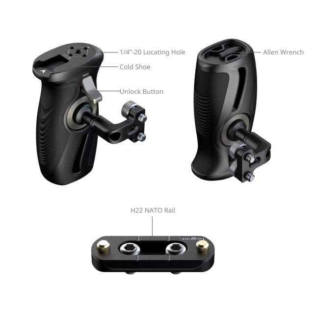 Otočná bočná rukoväť SmallRig so skrutkami 1/4"-20 5194 je určená na pohodlné snímanie z ruky.