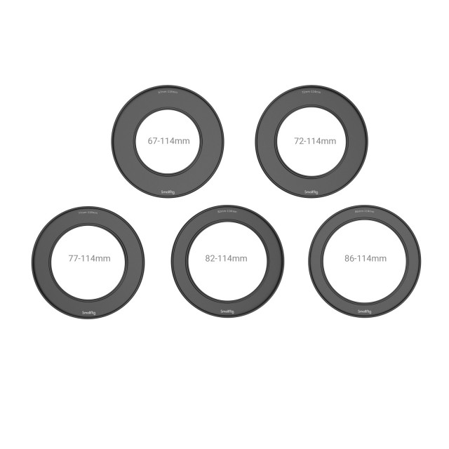 Sada redukčných krúžkov so závitom SmallRig (67 mm/72 mm/77 mm/82 mm/86 mm) pre Matte Box 2660 3410 obsahuje päť redukčných krúžkov a úložnú tašku so šnúrkou. Adaptačný krúžok sa bezpečne naskrutkuje na prednú časť objektívu a je vybavený závitmi na filtre, ktoré umožňujú pridávať na prednú časť adaptačného krúžku kruhové filtre, napríklad variabilné ND filtre a CPL filtre. Okrem toho sú adaptérové krúžky navrhnuté s hranou proti otáčaniu, aby sa zabránilo náhodnému odpojeniu pri použití v kombinácii s matným boxom, čím sa zaistí bezpečnosť.