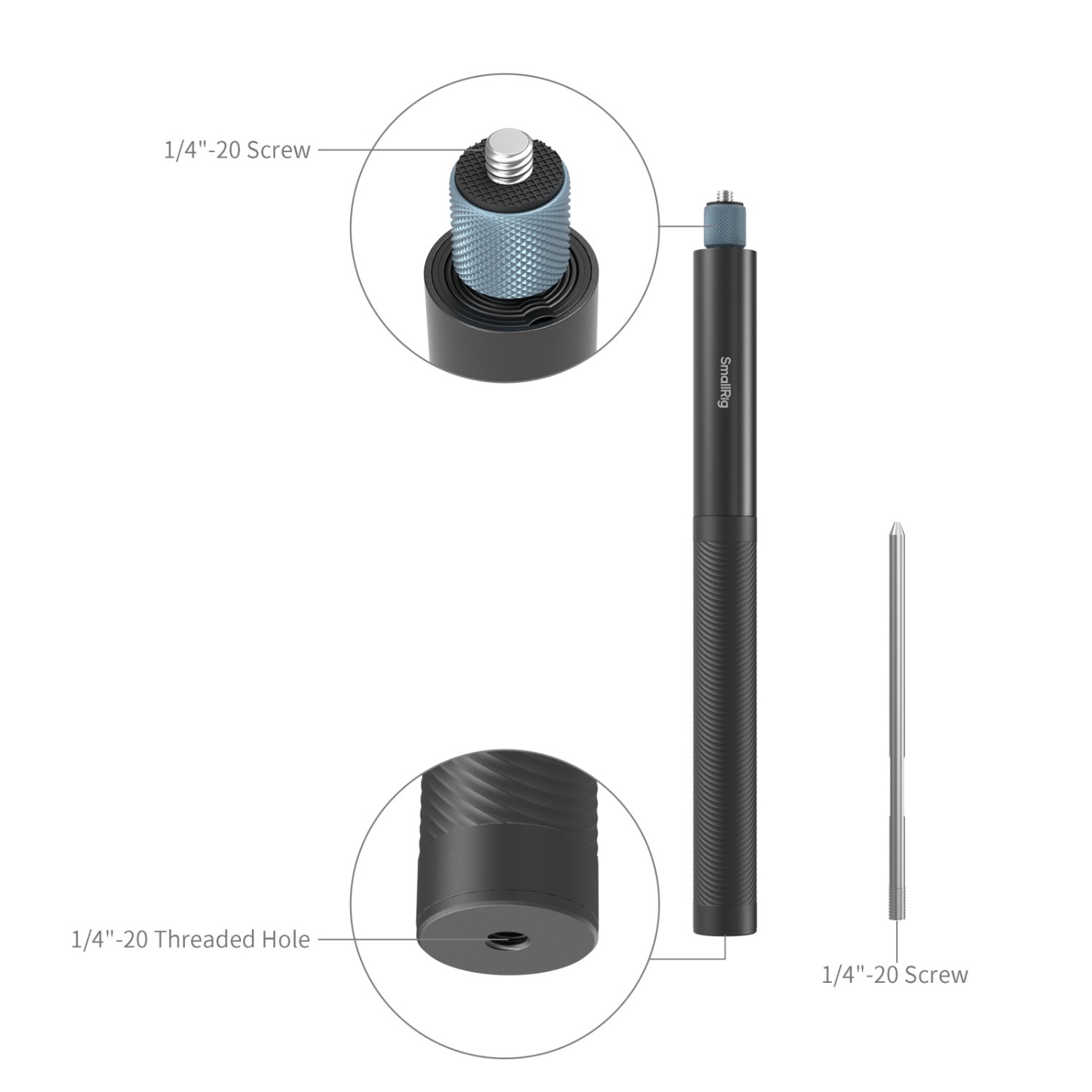 Podpora selfie tyče SmallRig pre akčné kamery 5270 je špeciálne navrhnutá pre akčné kamery, čo ju robí ideálnou pre autoportréty, skupinové fotografie a podobné scenáre. Kompletná sada obsahuje selfie tyč, remienok na zápästie a zemný kolík.