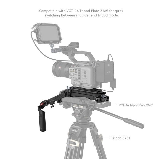 Súprava SmallRig Shoulder Rig Kit (Pro) 4274 je navrhnutá tak, aby poskytovala pohodlné a praktické riešenie na rameno. Skladá sa z ramennej podložky VCT, predlžovacieho ramena a rukoväte. Spomedzi týchto častí poskytuje ergonomická silikónová ramenná podložka pohodlný zážitok zo streľby. Je vybavená dvojvrstvovou rýchloupínacou doštičkou v hornej časti, vertikálne nastaviteľnou 15 mm tyčovou svorkou v prednej časti na vyvažovanie fotoaparátu a upevnenie 15 mm tyčí, ako aj rýchloupínacou základnou doskou VCT-14 v spodnej časti, ktorá spolupracuje s rýchloupínacou statívovou doštičkou VCT-14 2169 na prepínanie medzi režimom ramien a režimom statívu.